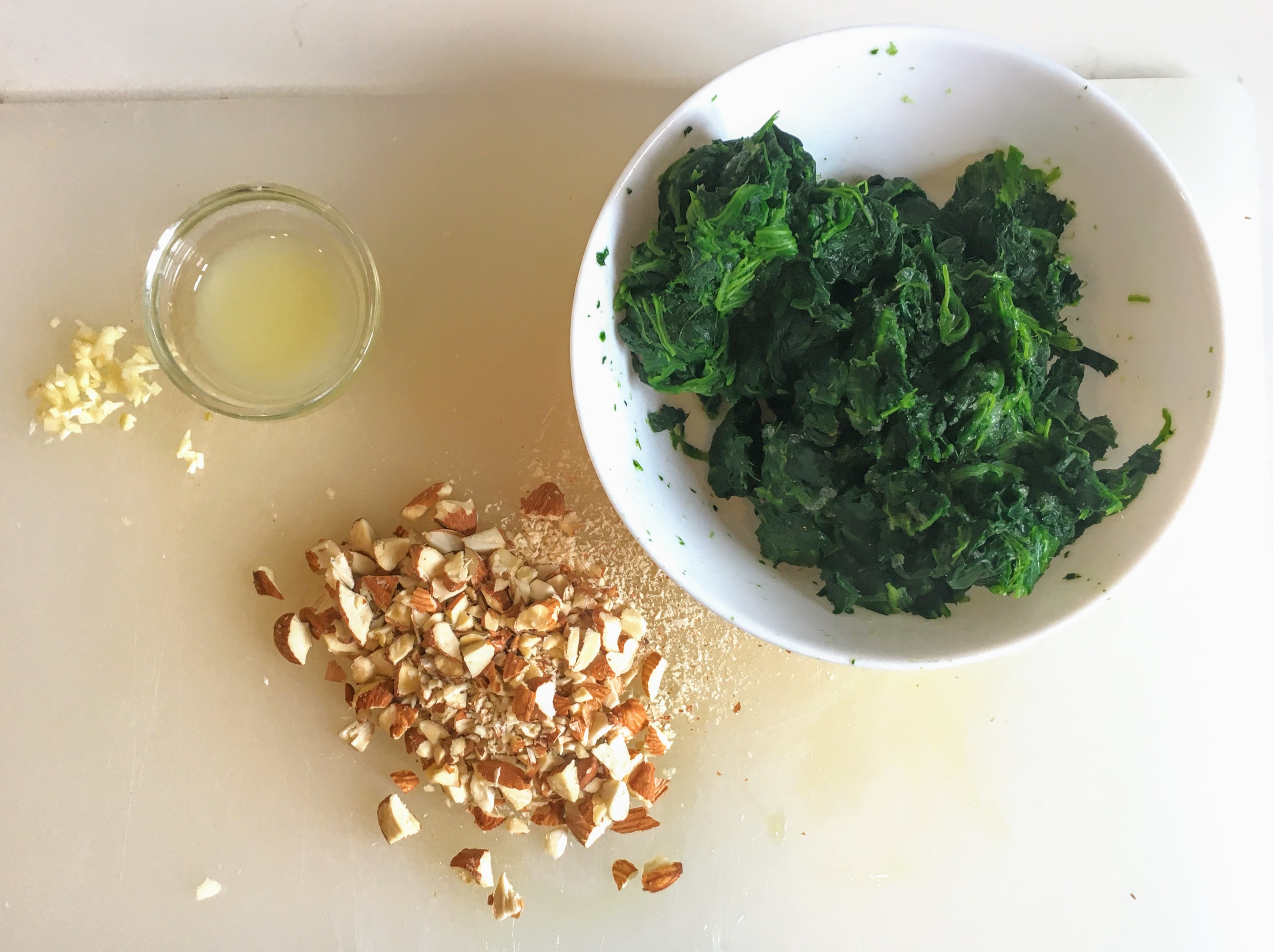 - 2 packages (10 ounces each, 20 ounces total) frozen spinach, thawed