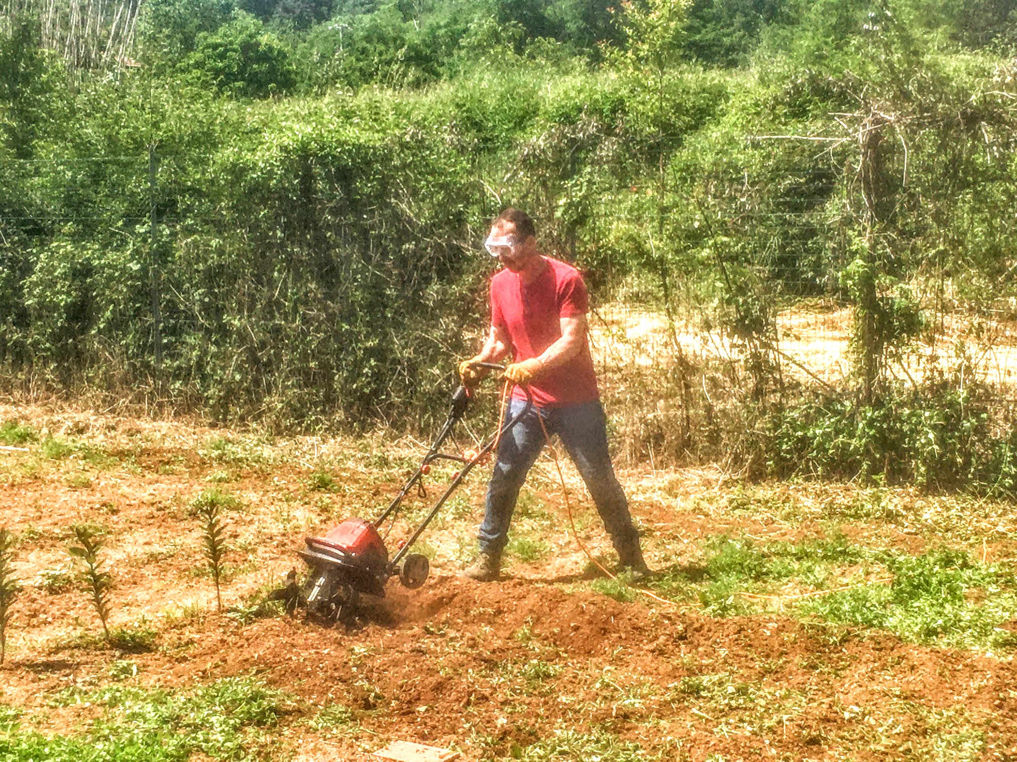 The garden is coming along nicely. Zucchini flowers just started popping; the potatoes are right on schedule; and the corn is growing 6 inches every week. The tomatoes are doing well enough that we’ve started building a fence for them to climb using materials from an old home renovation — thrifty! I’ve also built “tee-pees” out of bamboo and tree branches for the beans to climb, but due to a couple of weeks of rain and cold weather, they are taking their sweet time.