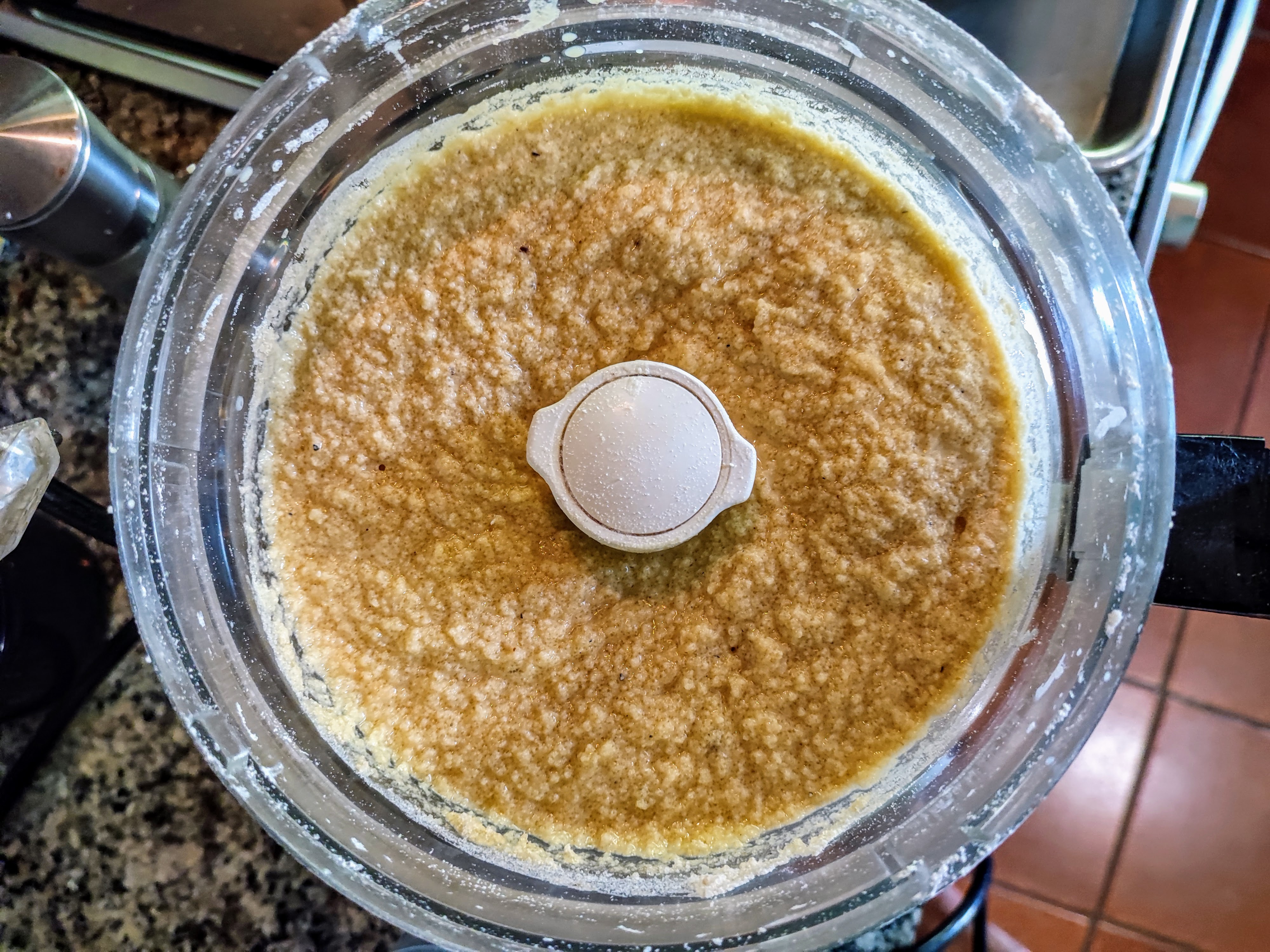 - With your hands (or several pulses of a food processor) mix in the butter until it becomes slightly smaller than pea-size. Reserve 1 cup, packed, of this flour-sugar-butter mixture and set it aside. This will be your coffee cake topping
