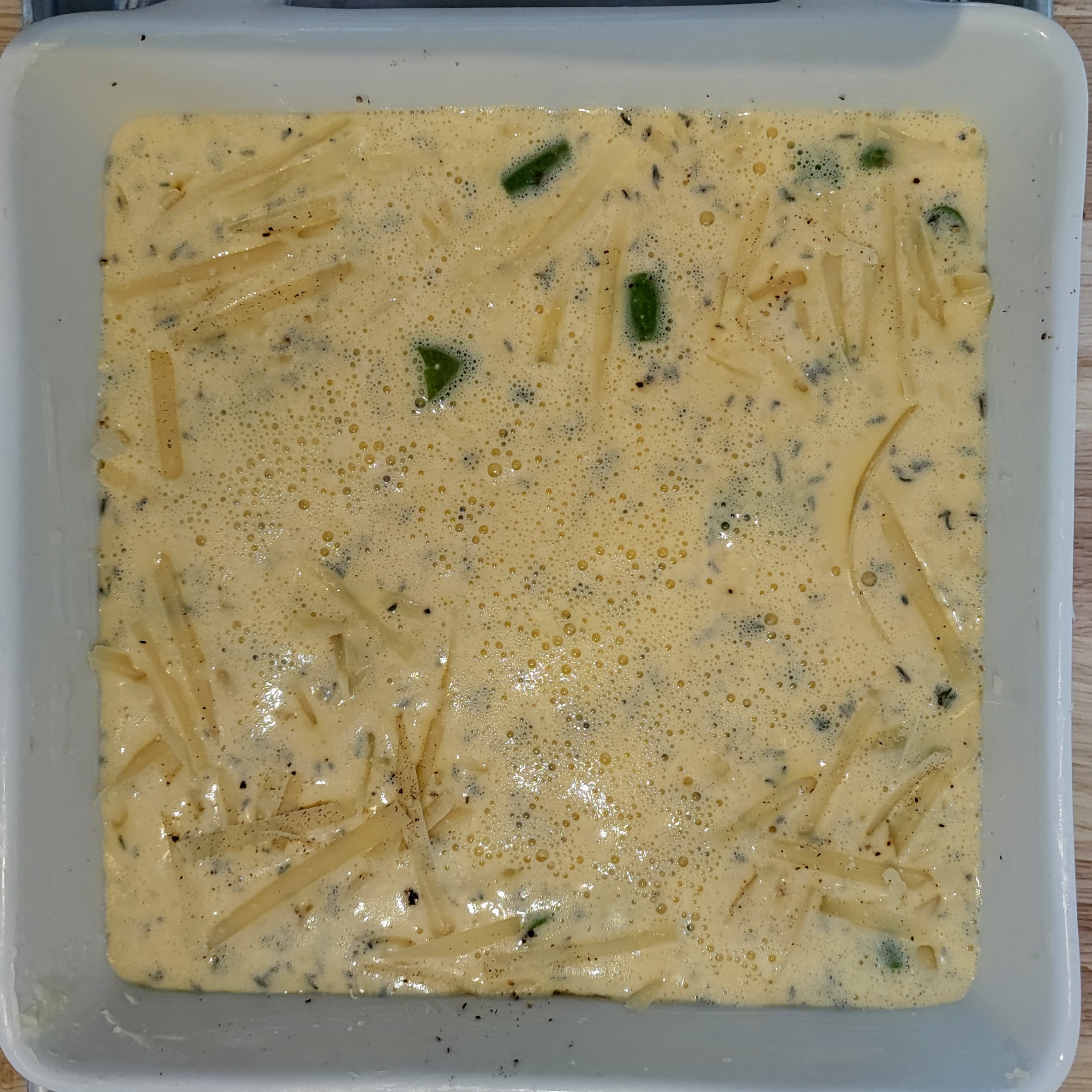 Today my recipe uses blanched asparagus and cherry tomatoes, but feel free to use whichever vegetables you like. If you choose a watery vegetable like zucchini, you may want to pre-cook it to reduce the water content.