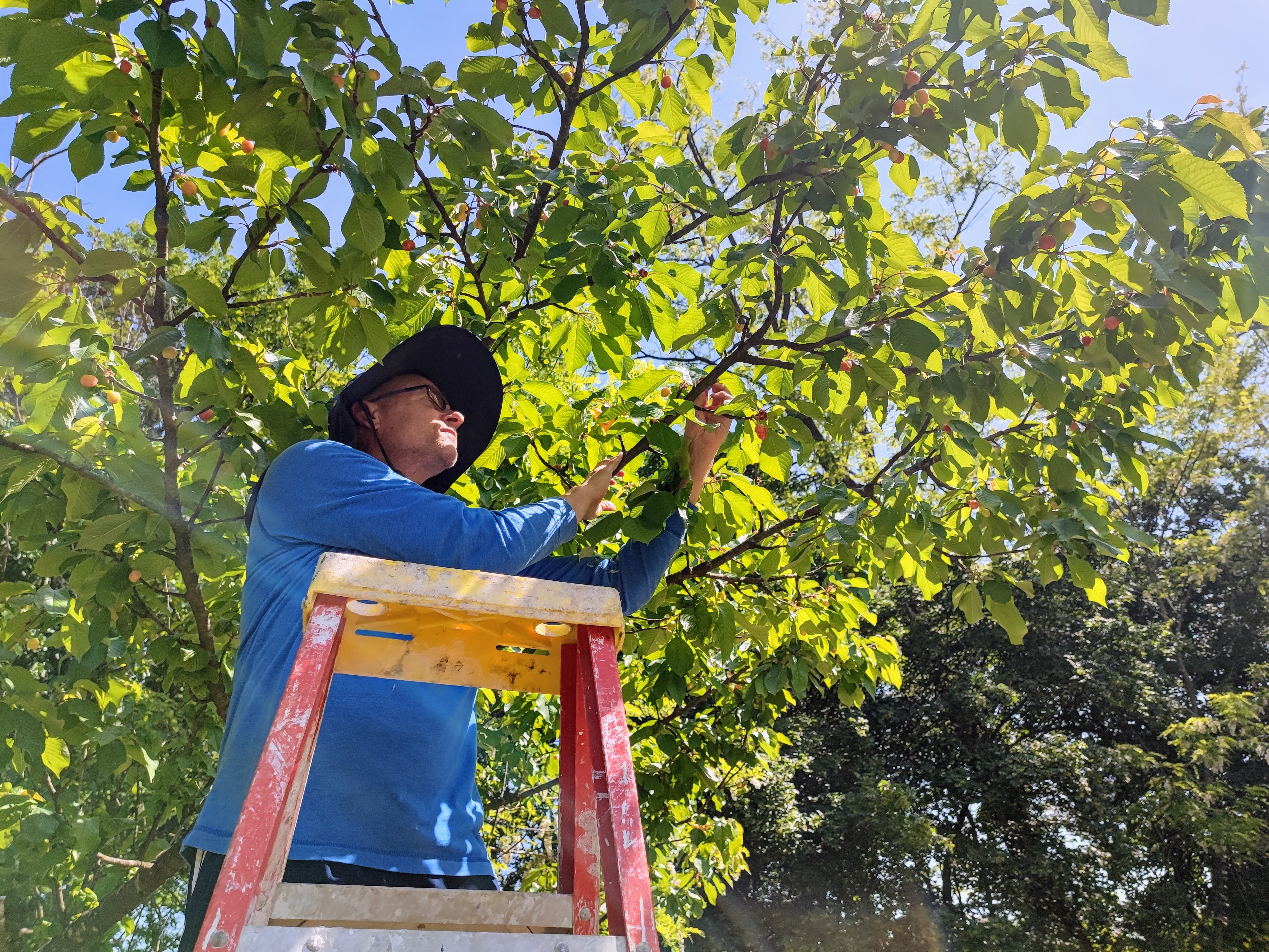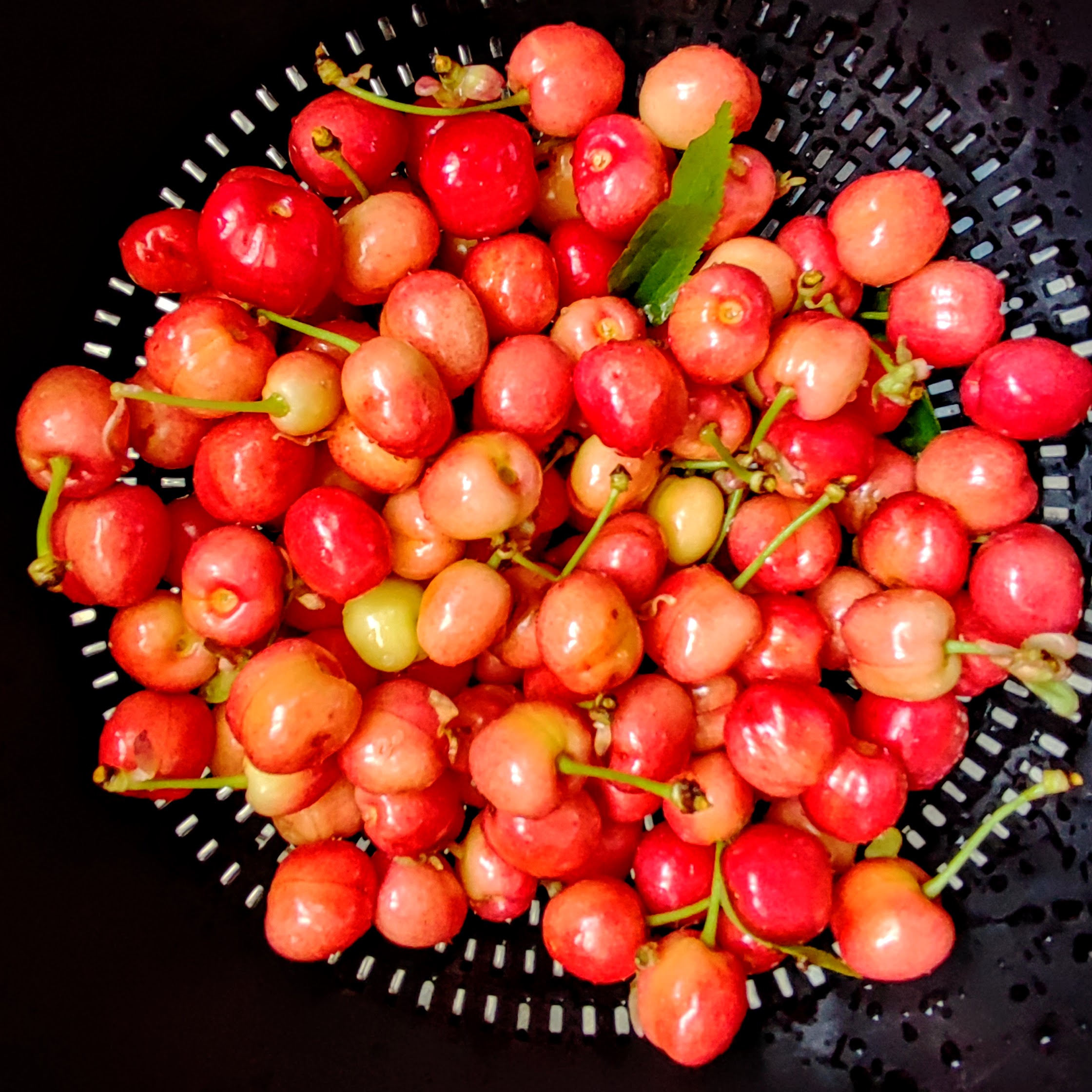 I have been planting seedlings and seeds in the garden in batches one to two weeks apart so that they are staggered when ready to harvest. Tomatoes are already forming on the first batch of San Marzano tomatoes. This year I am determined to avoid tomatoes with rotten ends (also affectionately known as “culaccio,” or ugly butt, in Italian) caused by inconsistent watering and lack of calcium. The irrigation system that Tom slaved over should be a big help. The two types of potatoes, garlic and onions are doing well. Also in the ground are the first batches of zucchini, eggplant, and assorted flowers. I think we may have lost one of our newly planted apricot trees for some unknown reason, but all the rest are doing fine. The existing cherry and peach trees have fruited this year, so I am beyond excited. The cherry trees must have heeded my warning of being cut down if they did not fruit again because we just picked our first batch. Now, how to safely climb up on the ladder to get the sweetest cherries 20 feet up in the air?