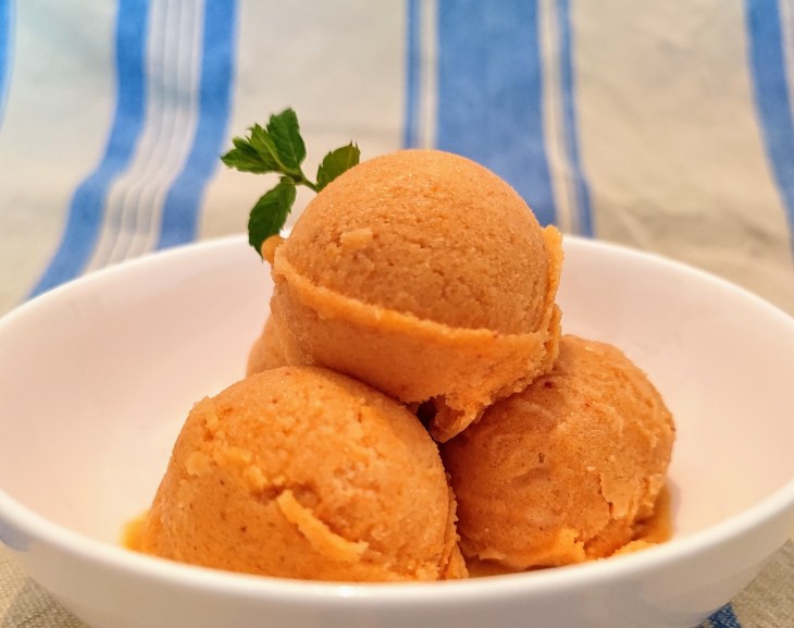 We have peaches coming out of our ears, so I have been making a number of recipes including this 2-ingredient sorbet that I found on Instagram. Do you ever come across such “miracle” recipes that only have 2 to 5 ingredients? Either you try them, and you are disappointed, or you pass them up because they seem too easy to work correctly.