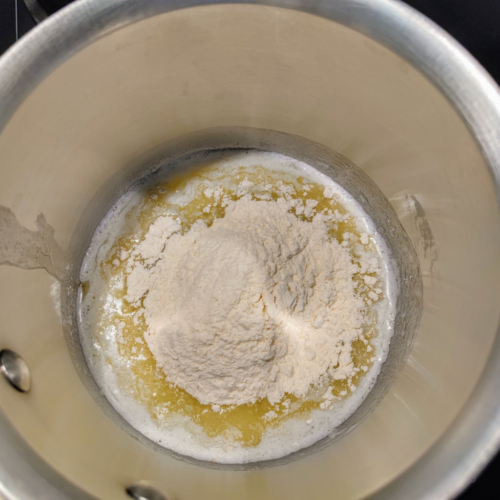 - Melt the butter in a medium saucepan and then add the flour and whisk to form a paste