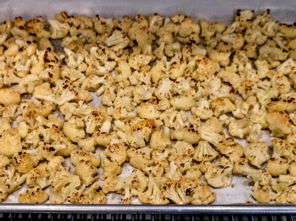 - Pre-heat oven to 400 F (200 C). Clean the cauliflower and break or cut it into small florets. Note: if you are making this for a bruschetta topping, make the florets very small as they tend to stay on top of the bread more easily. If you are serving this as a stand-alone side dish, the florets can be a bit larger). Place the florets on a baking sheet and roast them in the oven with the rack placed in the upper third of the oven until the florets have browned on the edges, about 25 – 30 minutes