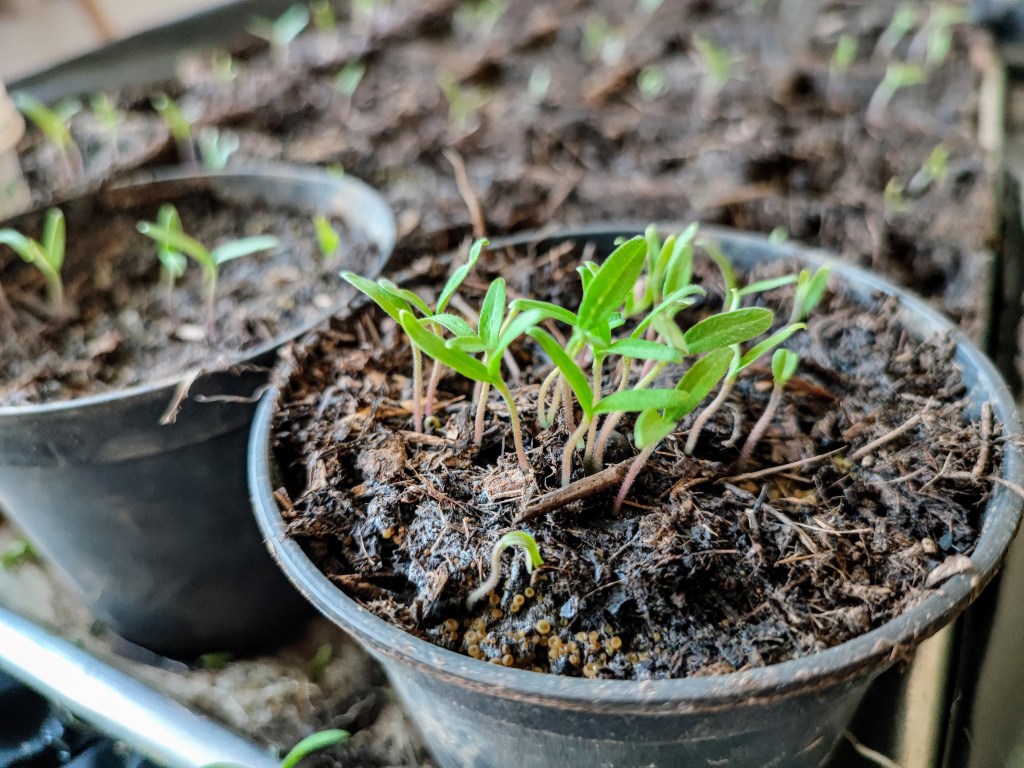 Tomato seedlings are poking their little baby heads out. And, the “tractor guy” completed the first of three passes in our field. We had a late frost this week, so I guess it’s a good thing no seeds have been sown directly into the ground yet. We are blessed with hundreds of cherry and peach blossoms this year. Hopefully the late frost didn’t detour them.