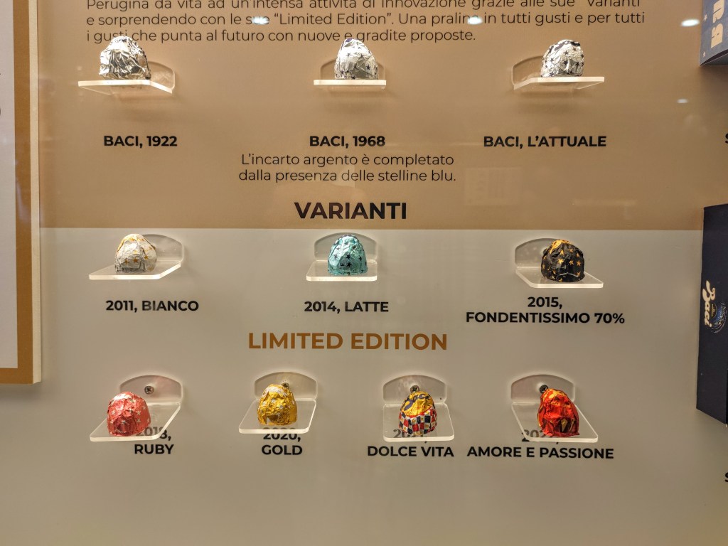 We have been so focused on our home renovation and preparing our garden for the 2023 season, it felt like it had been forever and a day since we took even a weekend for ourselves. We decided to go to Perugia, the capital of the region Umbria in central Italy. Besides the Etruscan and Roman history and medieval and Renaissance architecture, Perugia is also famous for Perugina chocolate which some of you may know from their Baci (meaning kisses in Italian) chocolates with the hazelnut on top. We booked a tour at Perugina’s Casa del Cioccolato to learn about their history, see the factory, visit the museum with all their designs and packaging from the last 100 years, and of course, do numerous tastings. They also have a chocolate cooking school, but we did not attend any classes.