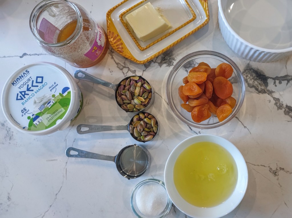- While the soufflé is in the oven, combine the yogurt, honey and remaining chopped pistachios. Refrigerate until ready to serve.