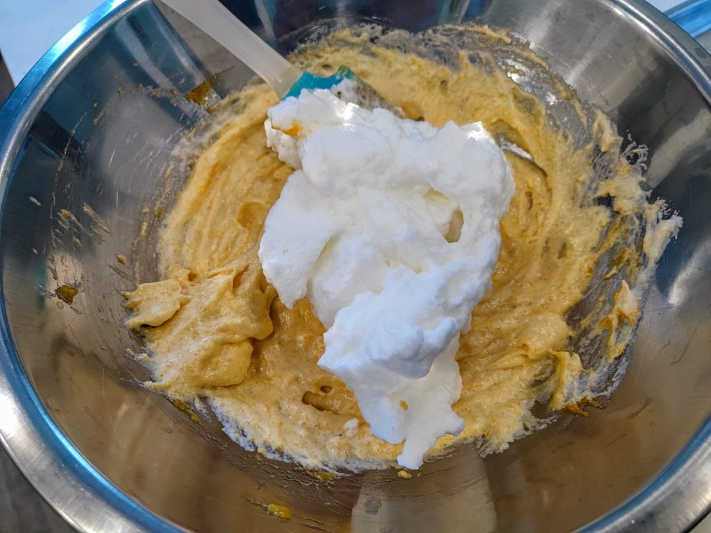 - Beat the egg whites in a large bowl until stiff. Using a whisk, mix approximately one third of the beaten whites into the apricot mixture. Then add the rest of the beaten egg whites, with 1/2 cup of the crushed pistachios, and fold in gently with a rubber spatula. Reserve the extra pistachios for the yogurt base.