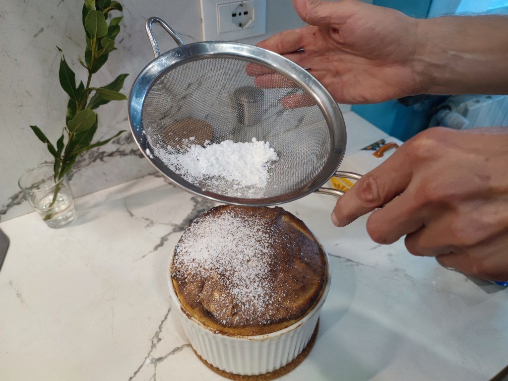 - To serve, spread a couple of spoonfuls of the yogurt mixture onto each individual plate. Dust the soufflé with confectioners’ sugar as soon as you take it out of the oven, and spoon onto the plates. Serve immediately.