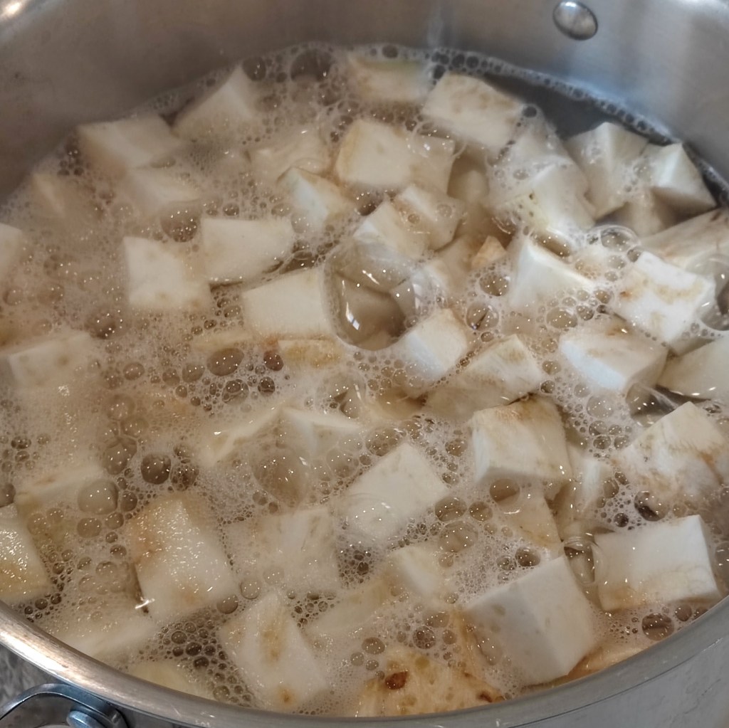 - 3 – 4 quarts of water or vegetable broth for boiling the cubed celery root
