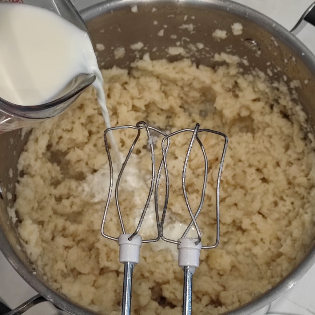 - 1/2 – 3/4 cup (118 – 177 ml) whole milk, half-and-half, or cream. The amount depends on what final consistency you want, firmer or looser.