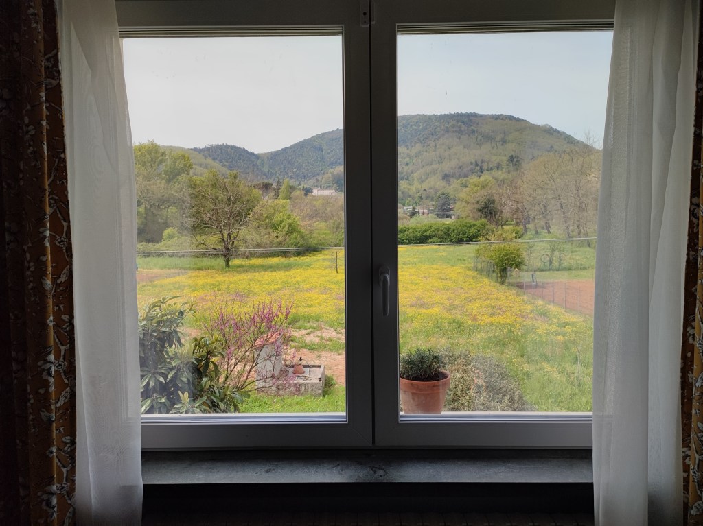 Inside the rental house we’re focused on cleaning, cleaning, and more cleaning the construction dust, which mysteriously stays in the air for weeks. Just when you think the floors are spotless, the mop water looks muddy again. Progress is being made, however, with headboards, coat racks and mirrors all hung on to the thick plaster walls. It’s finely looking like a charming country cottage just about to welcome its first guests, mid-May.