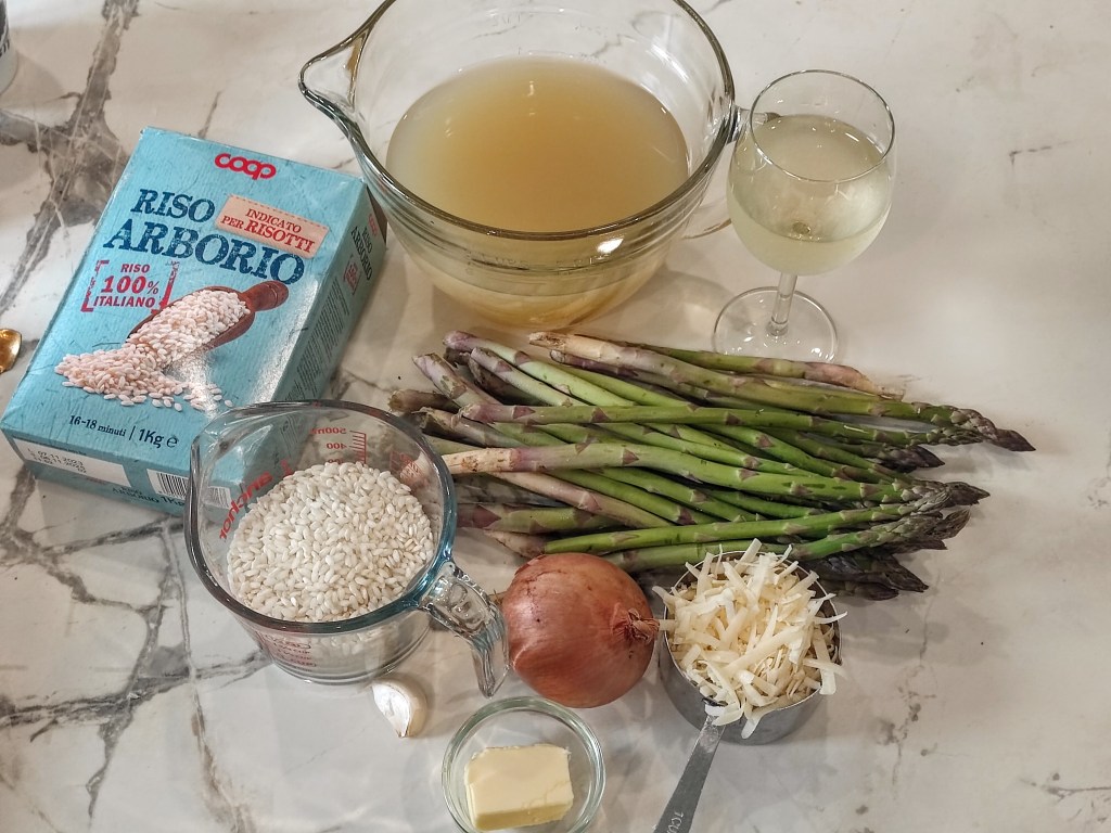 - 1 1/2 cups arborio, baldo or carnaroli rice (NOTE: It must be one of these rices specifically grown for risotto. Regular rice will not work)