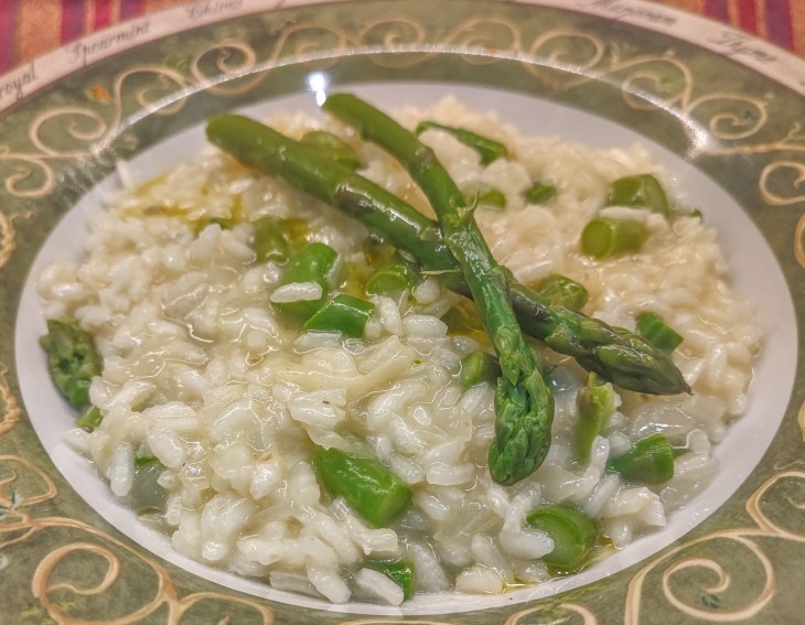The creamy texture and taste of risotto has ability to tame the bold, sometimes assertive flavor of asparagus, coaxing out its gentle sweetness. Do you have non-vegetable eaters at home? Try risotto this way – it’s mild enough for even children to enjoy.