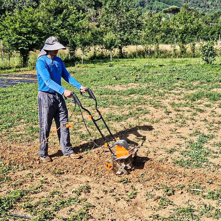 The garden is in full swing and already producing tons of weeds, my specialty. All 15 rows have been weed tarp blocked and planted. This is the first year I’m using weed blocking tarps, so I hope they are worth the money. Many of the seeds planted 2-3 weeks ago have germinated while others are still being shy. I’ll give them another week before re-planting. It’s looking like it’s going to be another hot windy summer so I’m watering everyday using the new irrigation hoses. Thanks to the heavy clay soil, by late afternoon the plowed rows look like cracked dry lake beds. Still, though, the moisture reader tool says there’s plenty of moisture just under the surface.