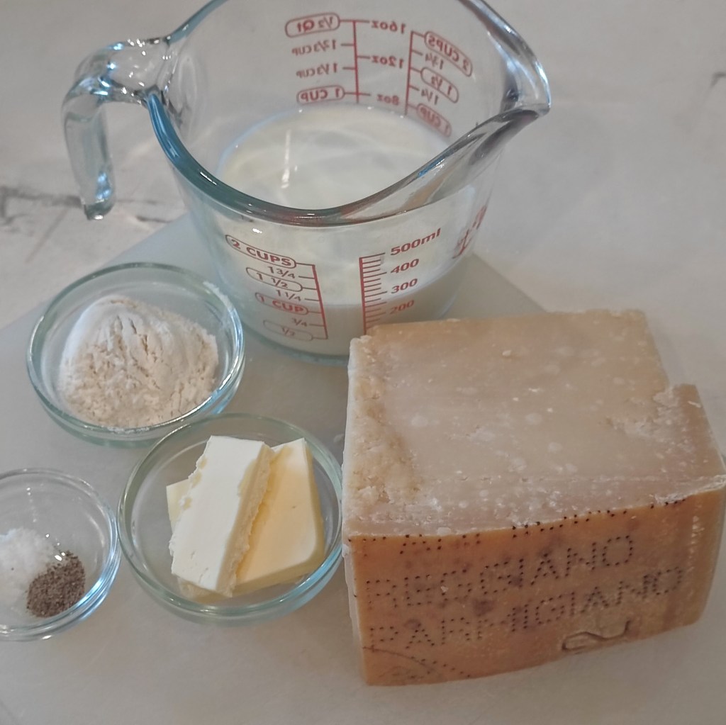 The ingredients are few, but it’s important to use the highest quality. Fake Parmigiano Reggiano? Forget about it! Anything but whole milk? Get outta here! Margerine instead of butter? Are you crazy? Go forth and densify your Parmesan cream, you won’t regret it.