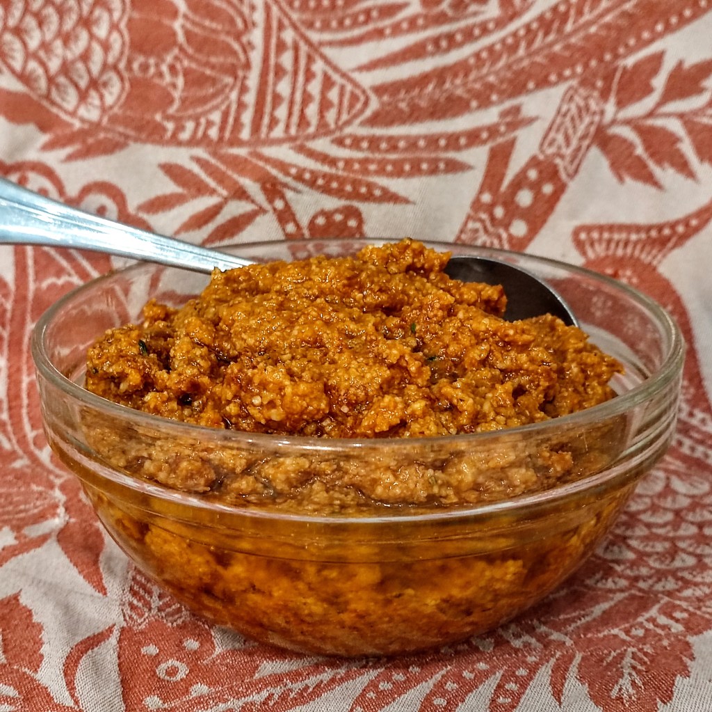 Sun-dried tomato pesto isn’t only made for pasta. It is also great as a sandwich spread, a dip, on eggs, or a dollop in a bowl of soup. You know what else? It’s also wonderfully delicious spread on my roasted and charred cabbage steaks. I’m not going to wax poetic and tell you stories about the origin of this recipe or my grandmother. If you like sun-dried tomatoes, just make this — I’m confident enough to say you’ll be food-orgasm glad you did.