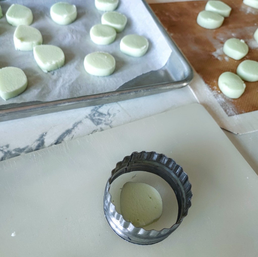 Peppermint creams are a classic roll and slice, easy-to-make candy. The original recipe comes from Ali Stone, a.k.a. rovinghaggis. My version is ever so slightly different, but the credit goes to her.