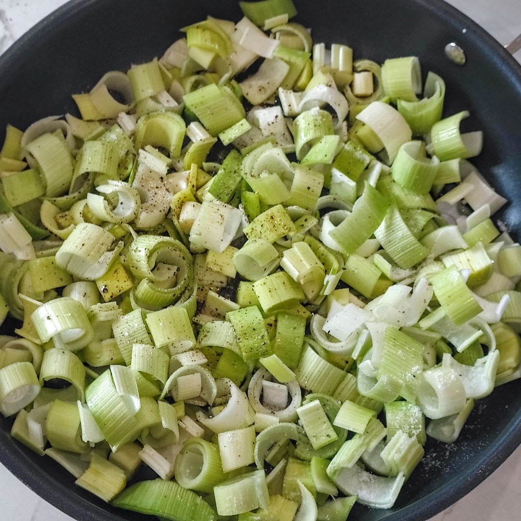 - Split the leeks lengthwise and remove any dirt with running water. Cut the leeks into about 1/2-inch (1 cm) segments. Place the leeks in a large saucepan and sauté until they are completely soft and mushy. DO NOT add any oil. You may add a splash or two of water but be sure the water is sautéed out completely. Let the leeks cool to room temperature