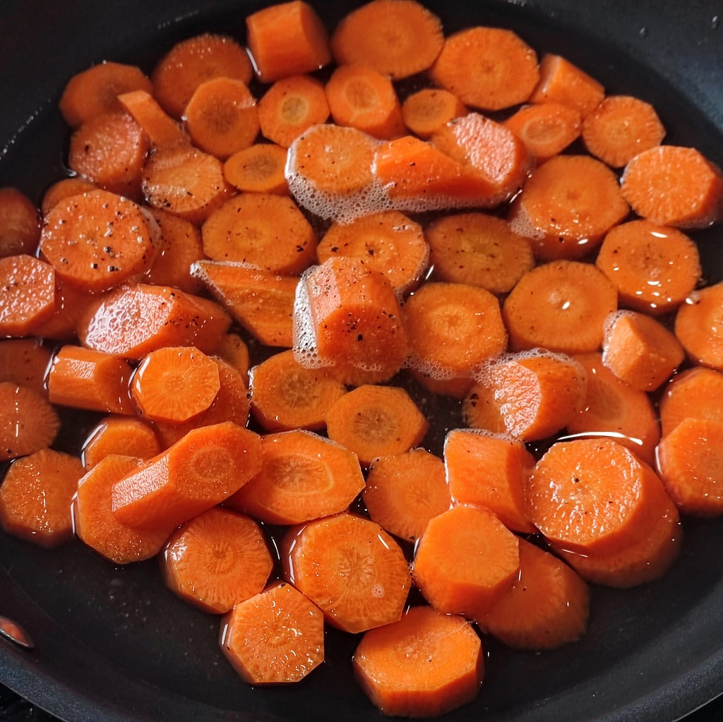 - In a large saucepan, sauté the carrots with a little water until a knife can very easily pierce through them, about 15 minutes covered with a lid. Drain away any liquid and place the cooked carrots onto a clean dish towel and let them cool to room temperature
