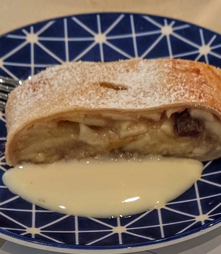 Two dacquoise cookies (crunchy meringue with ground nuts) with a chocolate, walnut and hint of coffee cream filling, what’s not to like?