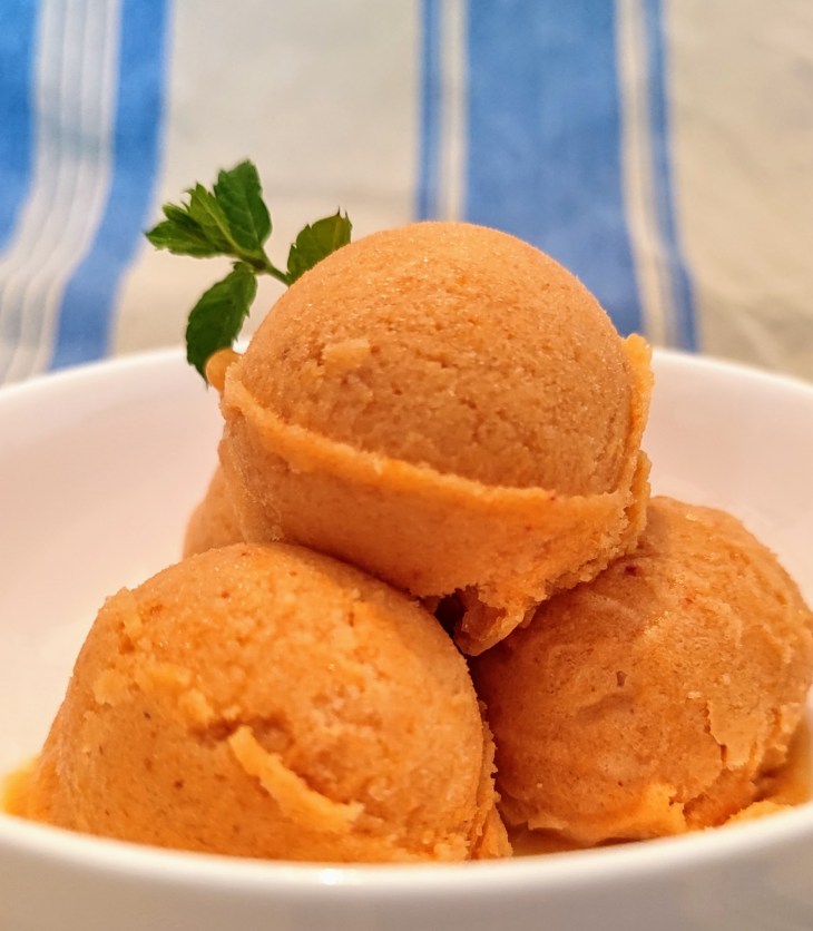 We have peaches coming out of our ears, so I tried this 2-ingredient sorbet recipe from Instagram